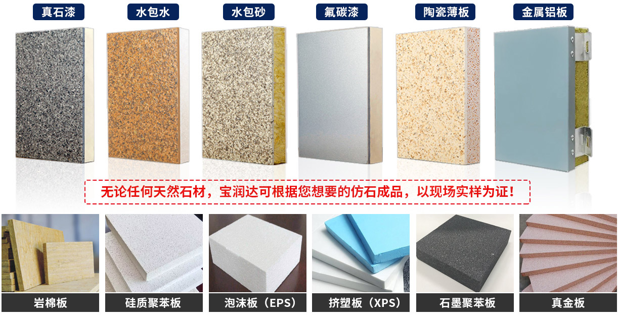 寶潤(rùn)達(dá)擁有6條先進(jìn)自動(dòng)化一體板生產(chǎn)線,可生產(chǎn)飾面效果{真石漆、多彩漆,水包水,水包沙,實(shí)色/金屬氟碳漆、陶瓷薄板、鋁板},保溫芯材采用{ A級(jí)防火巖棉板,真金板,擠塑板,泡沫板,石墨聚苯板,硅脂聚苯板}等,滿足各種項(xiàng)目芯材、飾面效果定制要求,日產(chǎn)量12000平,極速發(fā)貨。